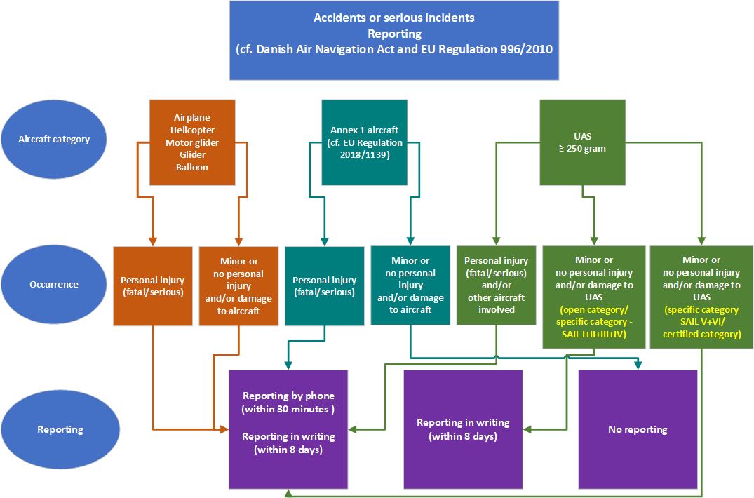 For the sake of the investigation process and with reference to EU Regulation 996/2010 and the Danish Air Navigation Act, any person involved in or has knowledge of an accident or a serious incident within Danish, Faroese or Greenlandic territory shall, without delay, notify the AIB.