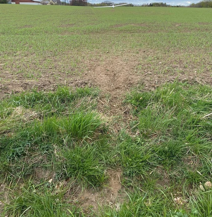 An off-field landing resulted in a touchdown on a field dike.