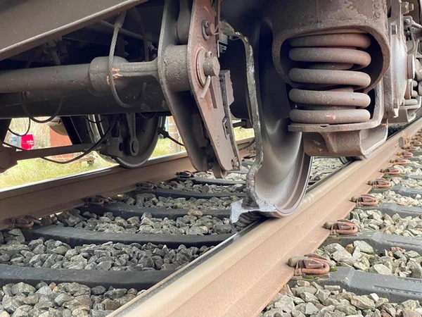 A freight train in transit on the main line from Germany to Sweden lost part of a wheel shortly before Ejby.